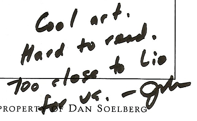 John Glynn’s hand-written note is honest and direct. This was the most valuable direction I received from any of the syndicates.